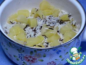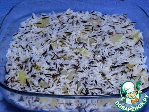 На лук выложим половину нормы риса.