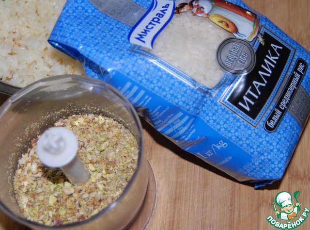 - Фисташки (ядра очищенные, в этот раз нам попались пережаренные, поэтому и цвет не сильно зеленый) — 3 горст.