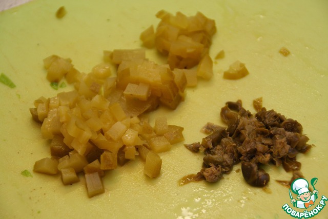 Соус смешать с огурцами, каперсами и чесноком, слегка взбить и заправить салат.