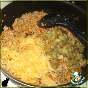 добавляем к мясу. Если надо, досаливаем.