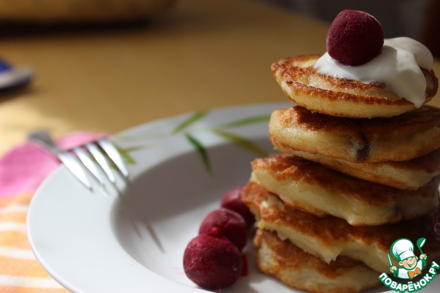 Рецепт «Итальянские манные оладьи с яблоком и изюмом»: