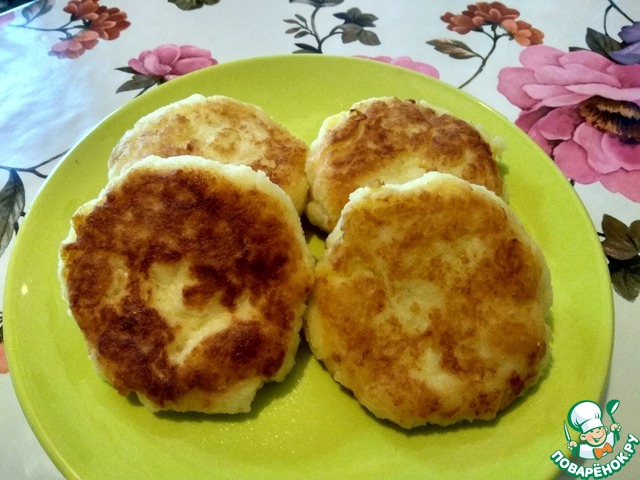 Когда масса остынет до слегка теплого состояния, слепите оладьи и каждый запанируйте в муке. Обжаривать на среднем огне на растительном масле до золотистости.