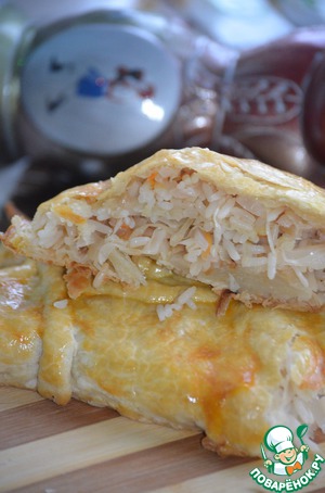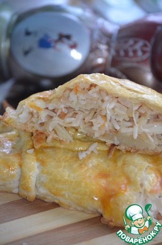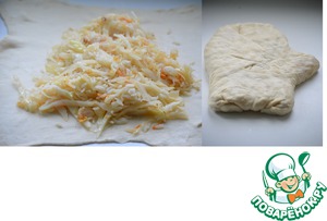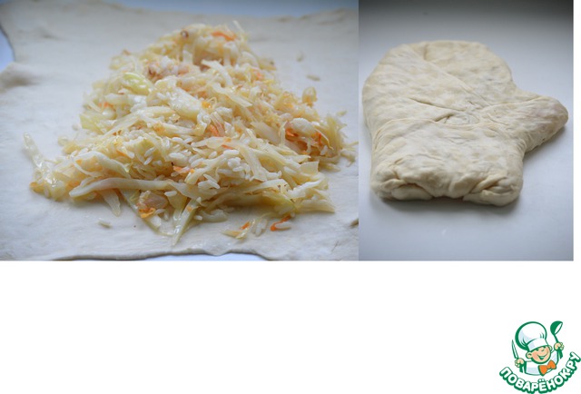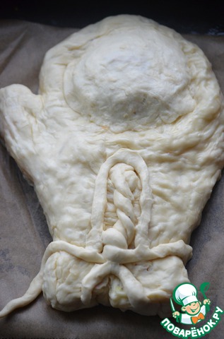 На раскатанное тесто выложить остывшую начинку. Оформить в виде боксерской перчатки (по желанию).