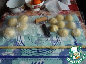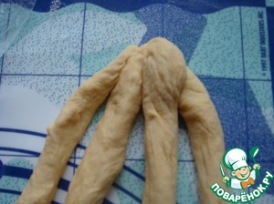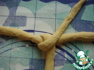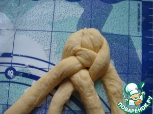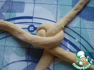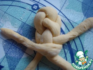 Разделить тесто на 14 колобков равного веса и оставить их на расстойку на 15 минут. В принципе, можно накатать колобков, сколько вам нужно, смотря какой формы плетенки вы будете закручивать.