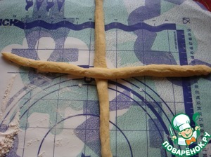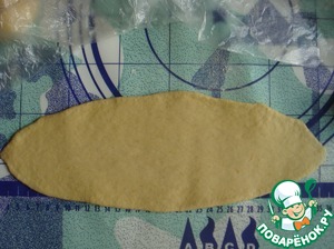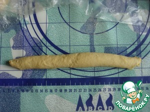 Чтобы сформовать ровный жгутик, кусок теста раскатать скалкой...