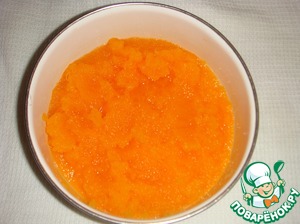 Тыкву натереть на мелкой терке (для драников) или пюрировать в блендере, но лучше натереть.