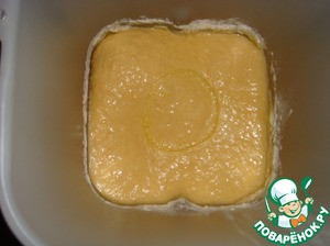 Смешать тыквенное пюре, дрожжи, мед, яйцо, белок, соль и 300 г муки, можно с помощью миксера.