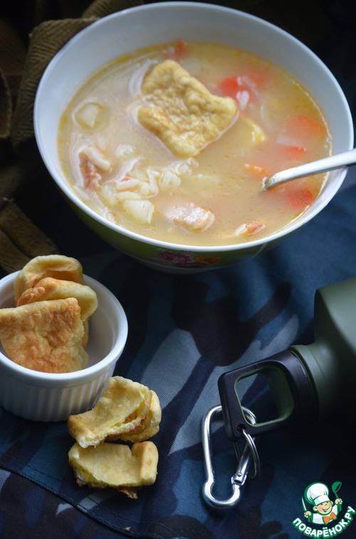 При подаче суп разлить по тарелкам, положить в каждую по 2-3 лепешки.