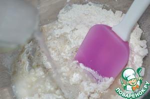 • Добавим стакан теплой воды. Смешаем до однородного состояния, опара как жидкая сметана. Накроем пищевой пленкой и оставим при комнатной температуре для брожения на 4-24 часа. Удобно опару приготовить с вечера, а утром приступить к замесу теста.