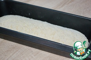 • Прямоугольник скатаем в рулет и положим в смазанную маслом форму размером 30 см. Накроем полотенцем и еще оставим на расстойку в течение 45 минут.
