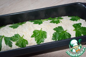 • Припылим буханку мукой, это защитит листочки петрушки от сгорания.