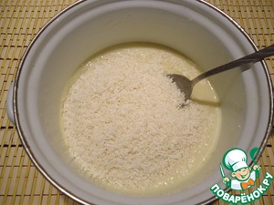 И снимаем с огня. Добавляем кокосовую стружку, размешиваем. Даем массе остыть.