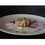Малину положить в центр и вокруг бабки, посыпать сахарной пудрой или полить малиновым джемом.