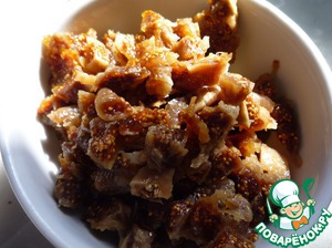 Инжир замочить в теплой воде на минут 20. Затем мелко нарезать.