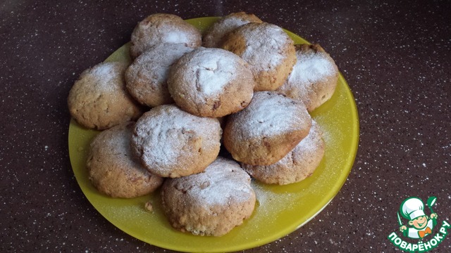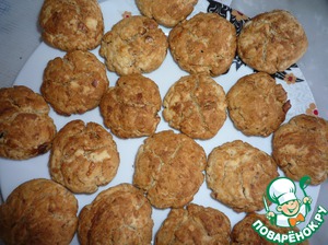 Из теста формируем шарики, затем слегка приплюснуть ладонями. Складываем на противень с бумагой для выпечки. Ставим в разогретую до 180 град. духовку. Выпекаем 20-30 минут.