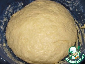 • Из опары и оставшегося сахара, ванильного сахара, яйца, сливочного масла и соли замесить тесто. Накрыть полотенцем и дать постоять еще 30 минут.