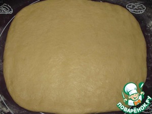 • Тесто хорошо вымесить и раскатать толщиной 1-1,5 см. Разложить на противне и сделать бортик.