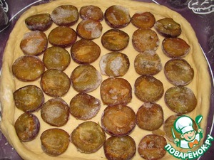 • На тесто выложить сливы, выпуклой стороной вниз. Сливы у меня мороженные, я их не размораживала.