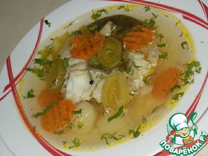Аккуратно вынуть рыбу из воды и опустить в суп, варить еще 10 минут.