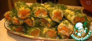 ПРЕКРАСНАЯ закуска!!! А я по картинке подумала, что внутри лосось. и ищу его в ингредиентах БЕСПОДОБНО!!!!