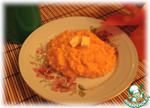 Каша получилась изумительная! Вначале я переживала, что молока мало и каша будет очень густой, но вышло все очень здорово - тыква дала свой сок, поэтому получилась хорошая консистенция. Мы с моей дочуркой с удовольствием съели кашку. Доченька вообще была в восторге! А со сливочным маслом... просто объедение.