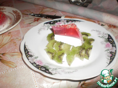 Когда желейный слой хорошо застынет, сверху добавить и разровнять наше суфле, и в холодильник на 2часа, чтобы хорошенько застыло!