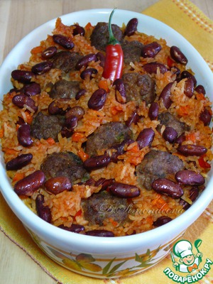 Рецепт «Запеченная фасоль с рисом и фрикадельками»: