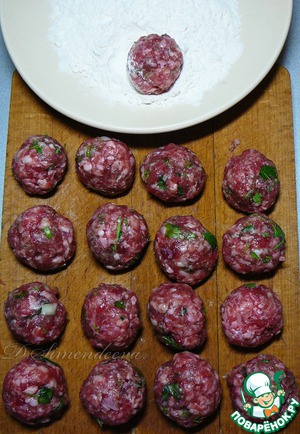 Мокрыми руками сформировать маленькие фрикадельки. Обвалять их в муке.