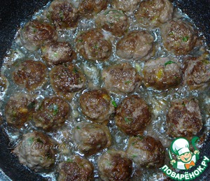 В большой сковороде разогреть масло слоем 1 см и обжарить фрикадельки на сильном огне, переворачивая, до румяной корочки. Готовые фрикадельки перекладывать на тарелку.
