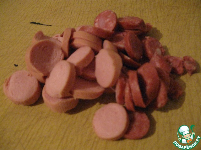 - Колбаски (охотничьи на 1 порцию) — 50 г