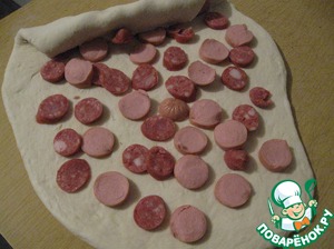Уложить на раскатанный пласт теста. (450г. теста на 1 порцию хлеба)