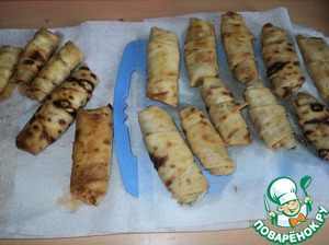 Обжариваем "сигары" во фритюре до золотистого цвета. Выкладываем на салфетку.
