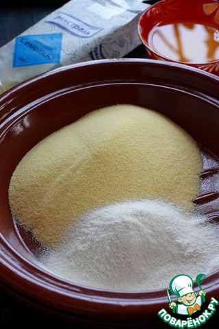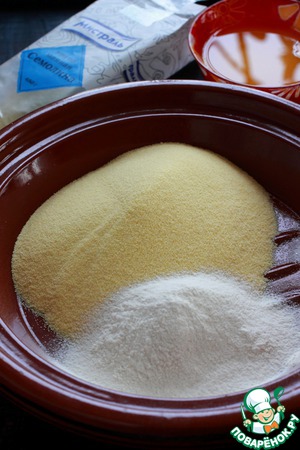 Смешать в миске семолину, муку и щепотку соли.