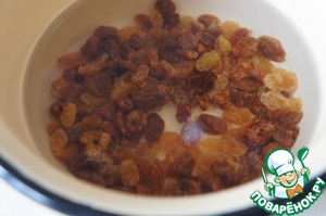 Изюм промыть и залить горячей водой на 10-15 минут.