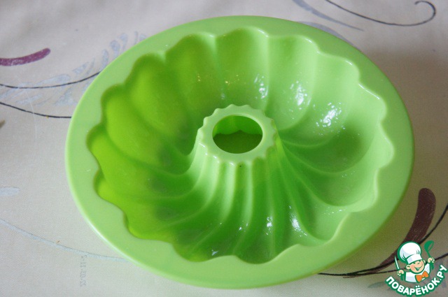 Силиконовую форму с пустой серединкой смазать растительным маслом. Если форма не силиконовая, выстелить пищевой пленкой. Если такой формы нет, можно взять любую мисочку и поставить в серединку небольшой стаканчик.