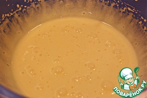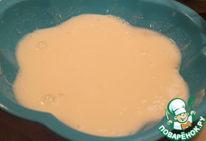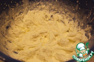 • Отделить белки и желтки. Желтки взбить с половиной сахара (25гр) до образованоя белой пенистой массы.