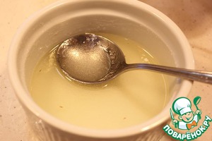 • Лимонный сок подогреть с половиной сахара (50гр), но до кипения не доводить. Желатин отжать и растворить в горячем лимонном соке.