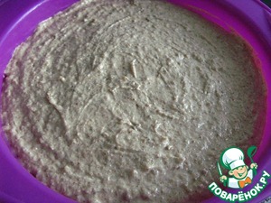 10. Духовку разогреваем до 180 градусов. Выливаем тесто в форму (диаметром 22см) и равномерно его распределяем. Если у Вас форма не силиконовая, то предварительно смажьте ее сливочным маслом.