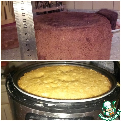 Приготовила этот тортик, предварительно прочитав все комментарии! Муки взяла 250 грамм. Мультиварка Редмонд, мощность 800 Вт, чаша 5 литров, но 65 минут в режиме Выпечка не хватило -оказался сыроват сверху. Допекала еще 15 минут. В крышку ничего не упиралось)) Удалось разрезать на 5 коржей при помощи тонкого ножа, ниткой не получилось, так как корж довольно плотный оказался. Сделала тортик и почти сутки он стоял в холодильнике. Пропитался очень хорошо! Тортик всем понравился, съели моментально