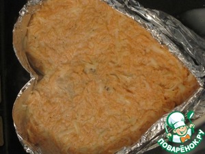 • 5. Добавить натертые сыр, 1 морковь, приправу для рыбы, черный молотый перец, соль и еще раз хорошо взбить.