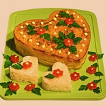 • 9. Выложить рыбу из формы на блюдо, украсить. Рис выложить в формочки произвольной формы. Достать из формочек на блюдо.