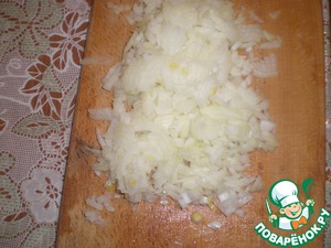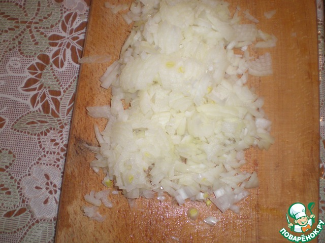Достаем готовое мясо. Да простят меня СПЕЦИАЛИСТЫ по соусам, за мой упрощенный вариант. Но мне кажется что этот кисло-сладкий соус самое ТО, к этому блюду. Он не перебивает вкус мяса, а мягко его дополняет. В масло, где жарилось мясо, добавляем мелко нарезанный лук. Обжариваем до золотистого цвета.