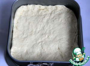 По поводу размера формы. Прямоугольная форма с высокими бортами 35 х 22 см (размеры по дну формы) - традиционный вариант. Теста получается очень тонкий слой.