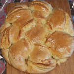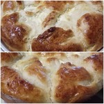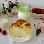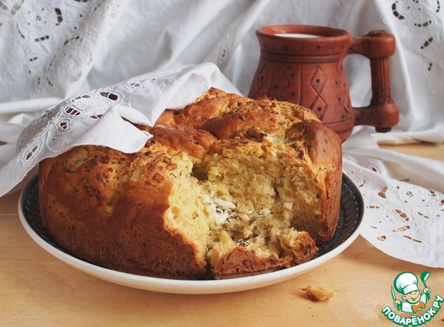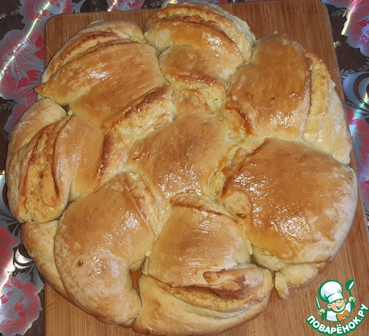 Его особенность-Это тесто. Тесто дрожжевое, но замешивается ложкой (т. е. получается чуть гуще чем на оладьи). Результат-выпечка получается очень мягкая, нежная, просто тает во рту. Из этого теста можно делать и пирожки.