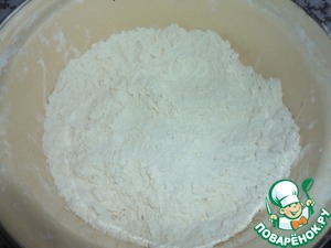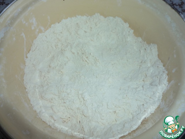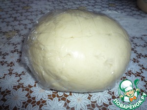 В мучную смесь добавить молоко с дрожжами и замесить тесто. Завернуть в пищевую плёнку и отправить в холодильник на 1 час