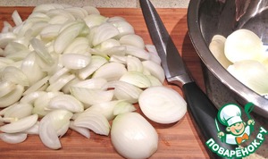 Каждую луковицу разрезать пополам и нарезать вдоль.