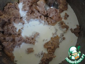 Молоко довести до кипения, тонкой струйкой всыпать манку+какао+сахар. Хорошо перемешать.