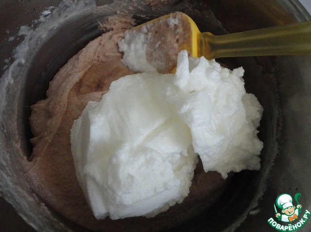 Духовку нагреть до 190гр. Взбить белки и аккуратно подмешать в манную массу.