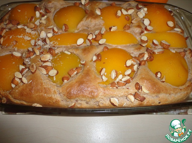 За 10 мин до готовности посыпаем сверху крупно покрошенным миндалём. За это время он успевает поджариться.