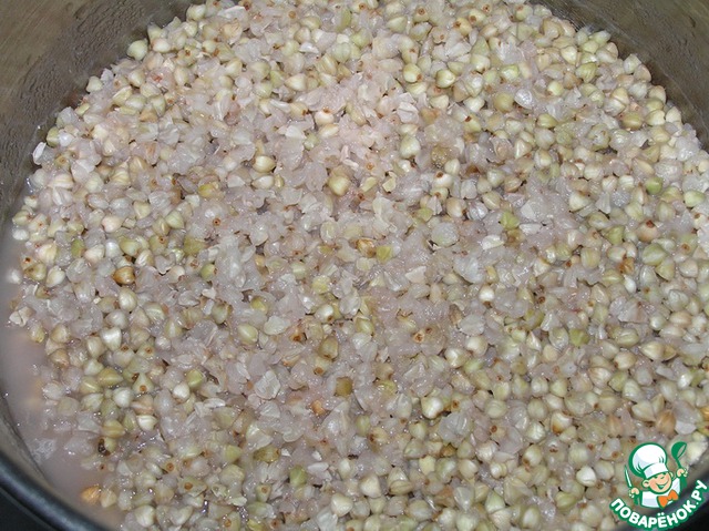 Поместить в кастрюльку, залить 100 мл воды, довести до кипения, снять с огня и дать настояться 20 минут. ***Если хотите по-быстрее сделать маффины к завтраку, то приготовить гречку можно вечером.***